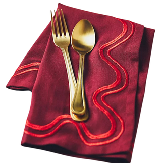The goal? A dreamy, layered tablescape where every element — from the dishes to the flowers — felt intentional. Burgundy napkins tied with cream bows sat atop vintage-inspired plates, framed by scalloped chargers and ribbed coupe glasses.