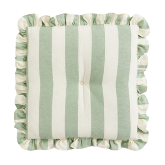 A low table setup with striped seat cushions — relaxed, charming, and intimate
