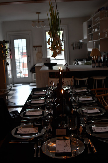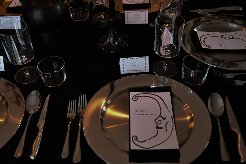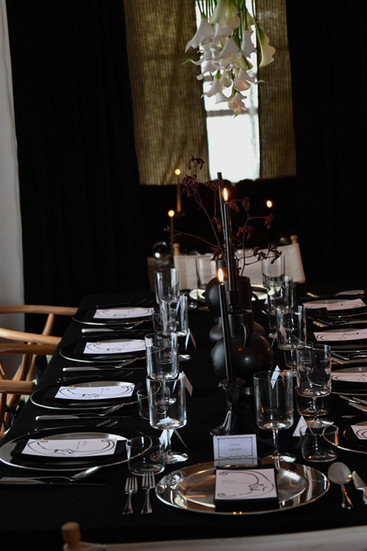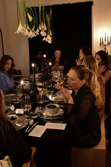 "I have to admit, I wasn’t sure what to expect from an evening inspired by the color black but as soon as you walked in, the atmosphere that has been carefully curated for you, was was both lively and welcoming. Every detail was so thoughtfully planned, from the stunning table settings to the culinary choices that took us on an adventure. It is such a unique evening, unlike anything I have experienced. Elegant, fun....but full of warmth — I can’t wait for the next one!" -Ali